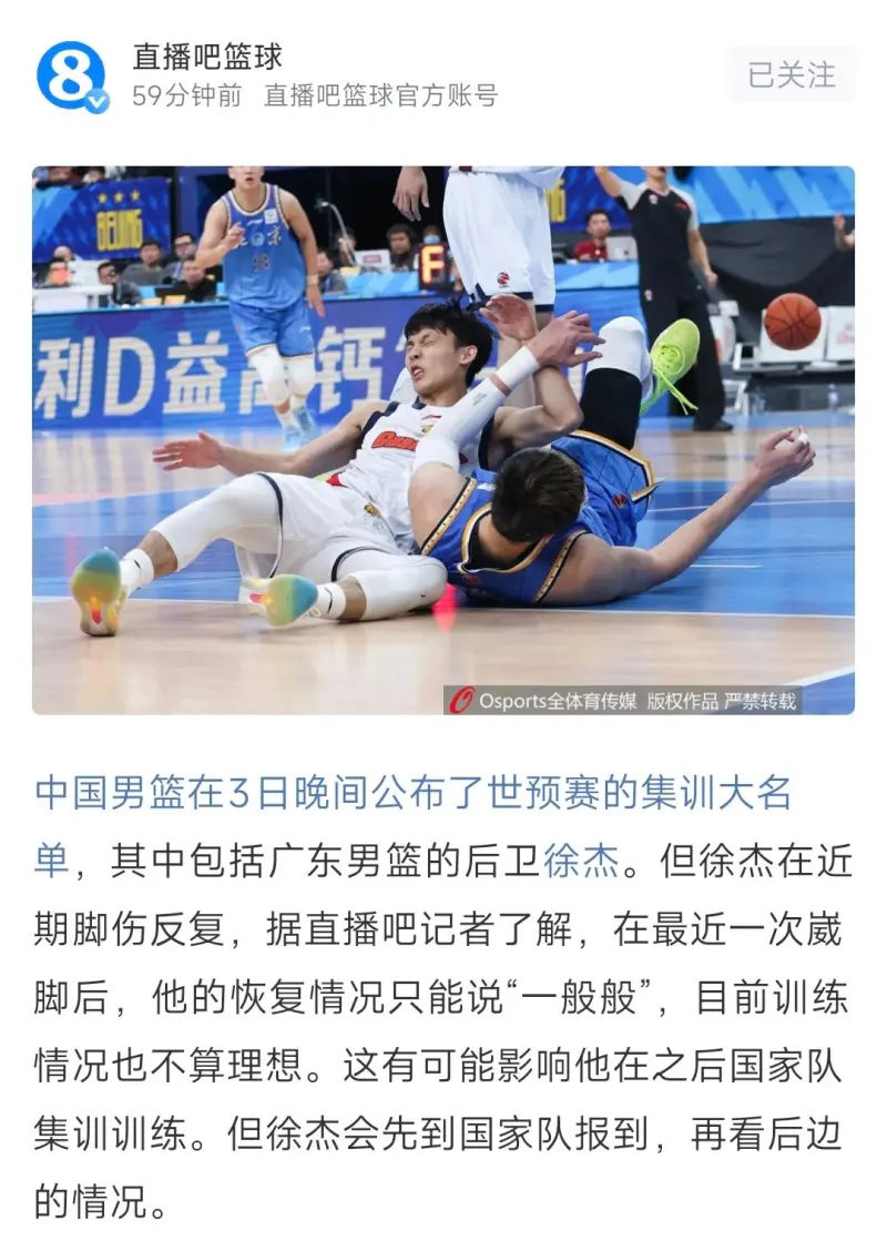 为备战国际篮联2027篮球世界杯预选赛第二窗口期比赛,中国篮球协会计划于2月5号至2月23号在国家体育总局训练局组织国家男篮集训。