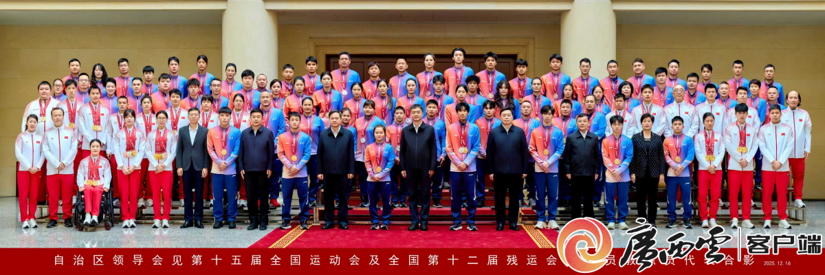 12月16日,自治区党委书记、自治区人大常委会主任陈刚,自治区主席韦韬在南宁会见第十五届全国运动会及全国第十二届残运会运动员、教练员代表,代表自治区党委、人大常委会、政府、政协向大家取得的优异成绩表示热烈祝贺,向全区广大运动员、教练员和体育工作者致以诚挚问候和衷心感谢。本届全运会、残运会上,我区体育健儿大力弘扬奥林匹克精神和中华体育精神,不畏强手、敢于拼搏、勇争佳绩,全运会上斩获10金10银8铜,金牌数和奖牌数创历史新高;在残运会取得18金27银23铜的优异成绩,还获得了体育道德风尚奖,实现了运动成绩和精神文明双丰收。