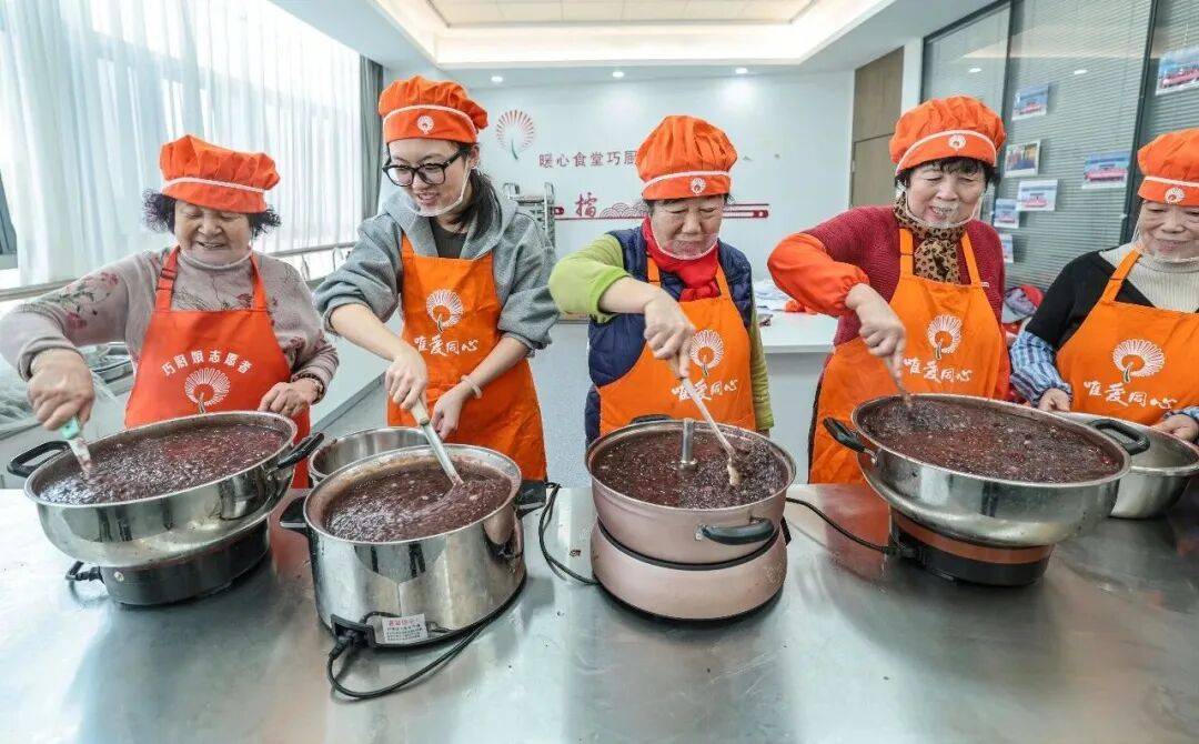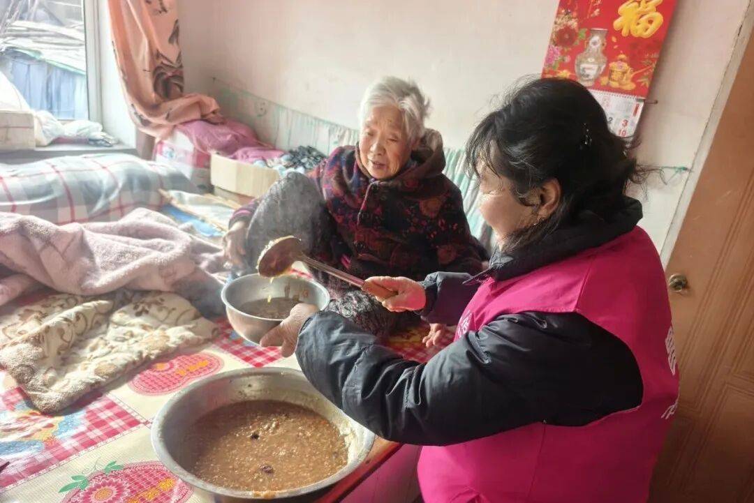 人和镇邢家村暖心食堂内,文明实践志愿者们精心熬制腊八粥,免费供村内老人享用,并为行动不便者送粥上门。一碗热粥,传递着真挚的敬老情与温暖的陪伴。