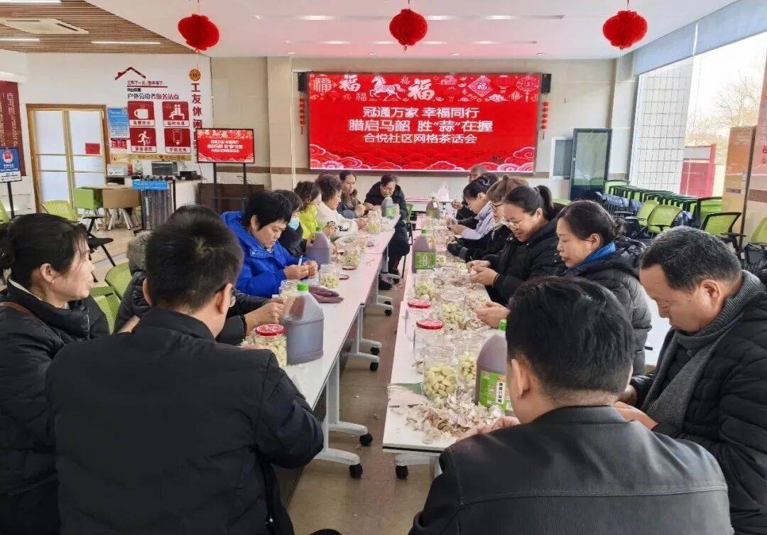 崖头街道南山社区开展“浓情腊八”活动,居民们一同制作腊八蒜,交流技巧、分享欢笑。文明实践志愿者们还向物业人员及高龄老人送上暖粥与问候,传递社区的关怀与温暖。